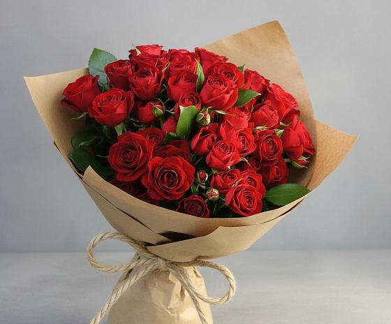 Этот букет ароматных красных кустовых роз, наполнит красотой, ароматом и хорошим настроением любое помещение, в котором этот букет находится, подобно тому, как присутствовать в садах, в которых цветут бесподобные розы, и лёгкий свежий ветер приносит с собой звуки морских прибоев. Такой букет кустовых роз станет идеальным подарок для вашей любимой.